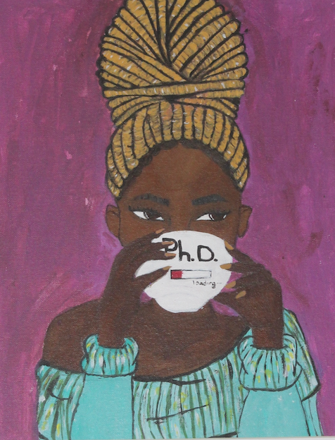 Celebrate the journey of a Black woman embarking on her first year of doctoral studies with this inspiring representation.
